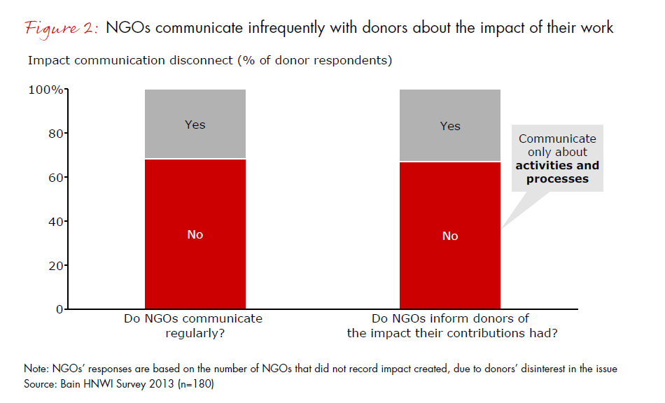 The gap in understanding about what creates philanthropic success is exacerbated by infrequent communication from NGOs to their donors about the results of their work.