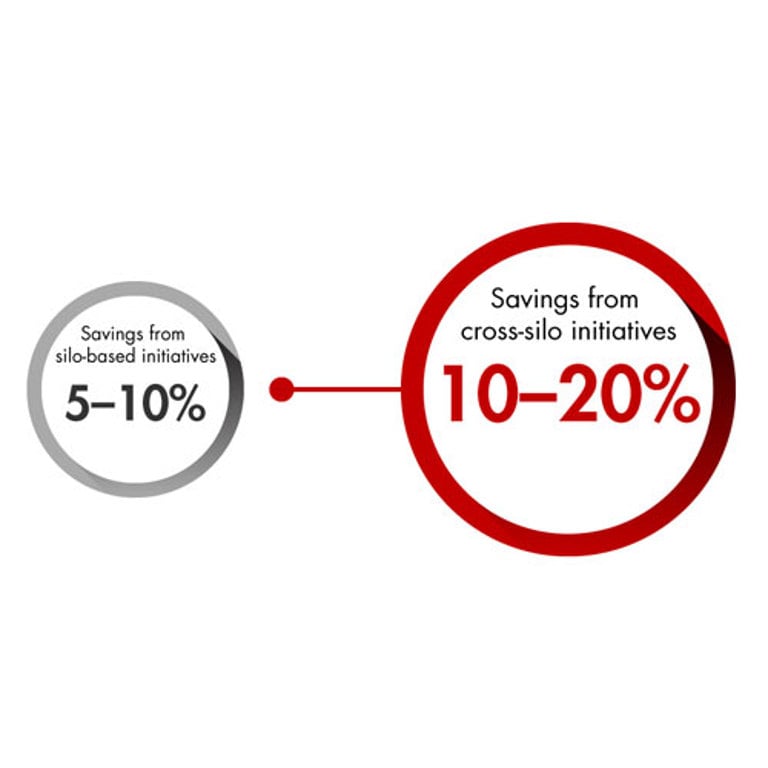 - Cross-functional savings can double the savings from in-silo initiatives.