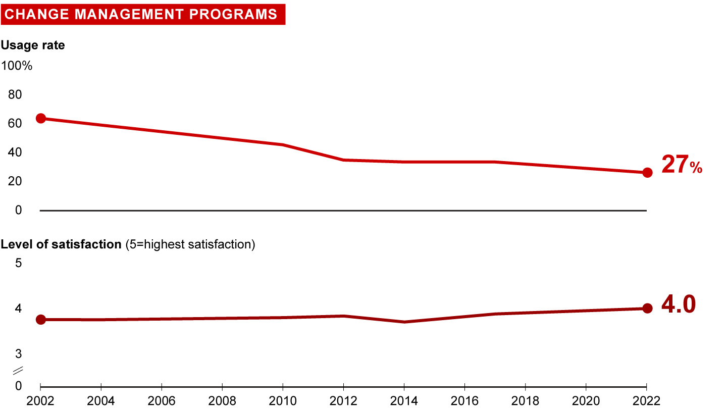 Change Management programs are plans that enable companies to implement new processes, systems, and strategies to achieve superior business performance.