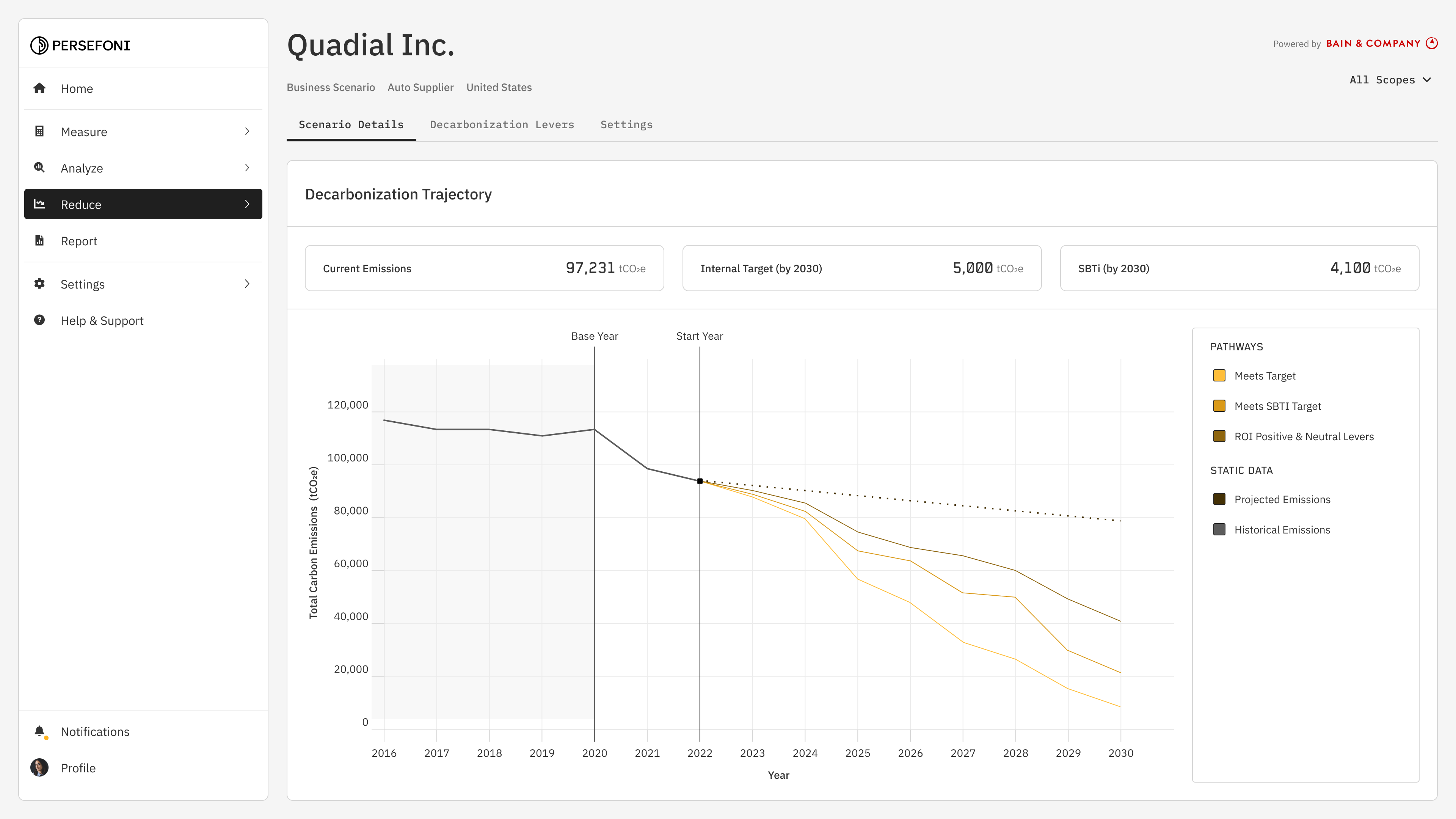 Now you can quickly generate an emissions baseline, assess the actions and investments most relevant to your industry and geography, compare different decarbonization pathways, and generate a plan that will achieve your goals.