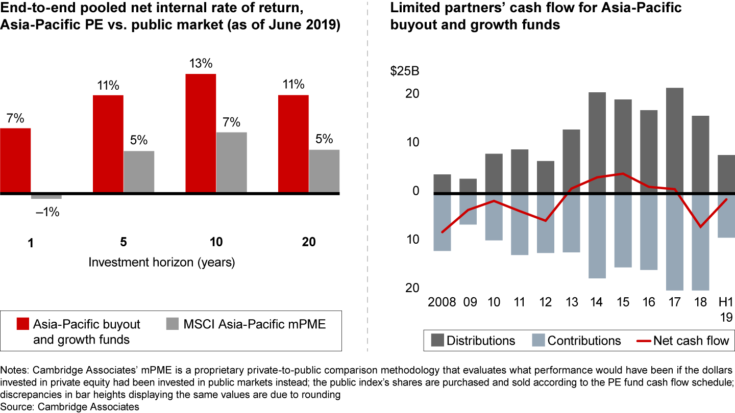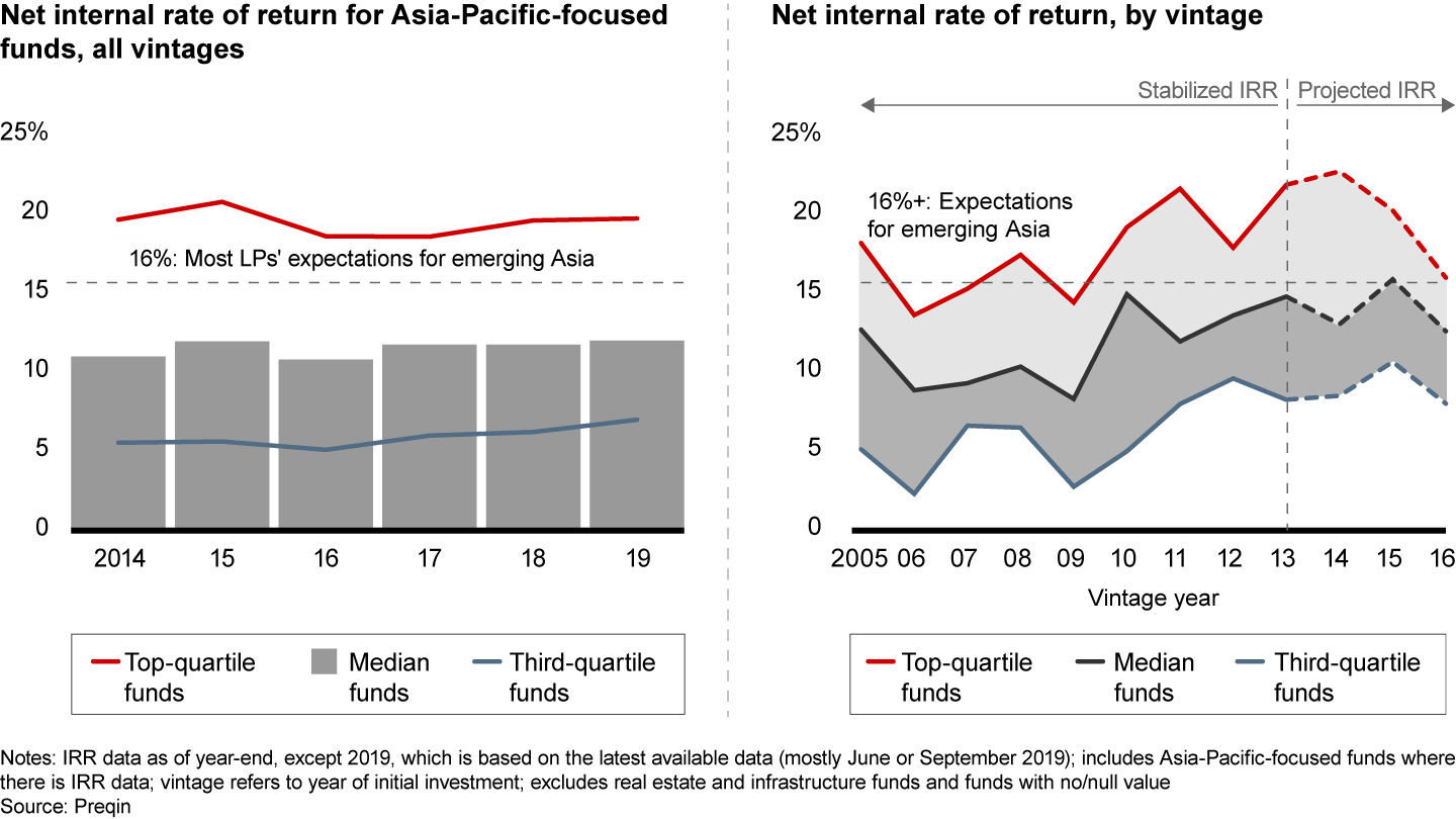 Importantly, returns remained strong, with the top quartile of Asia-Pacific-focused funds forecasting a net internal rate of return (IRR) of 16% or higher, and private equity outperformed public-market benchmarks by at least six percentage points across 1-, 5-, 10- and 20-year periods.