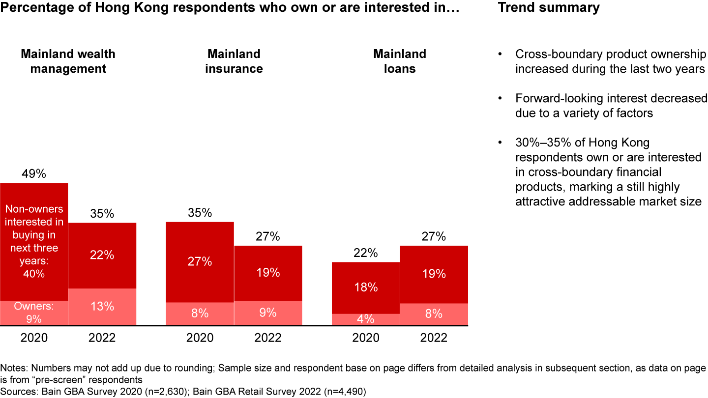 - Since 2020, ownership of cross-boundary retail wealth management, insurance, and loan products has increased slightly. However, the recently relaxed Covid-19 restrictions and uncertainty in the financial markets have affected future interest.