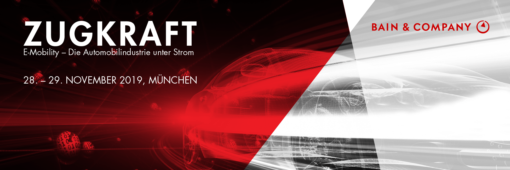 Veränderte Kundenbedürfnisse, neue Technologien und strengere Emissionsanforderungen. Die Automobilbranche verändert sich dramatisch. Das forciert die Entwicklung zukunftsfähiger Mobilitätslösungen. Vor diesem Hintergrund veranstaltet die internationale Unternehmensberatung Bain & Company am 28. und 29. November 2019 in München das Recruiting-Event „Zugkraft: E-Mobility – Die Automobilindustrie unter Strom“. Teilnehmen können Universitätsstudierende ab dem vierten Bachelorsemester sowie Promovierende aller Ingenieurwissenschaften und MINT-Fachrichtungen.