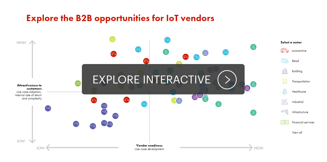Interactive B2B Opportunities for Vendors in the Internet of Things Explore the most attractive business-to-business opportunities for vendors in the Internet of Things. Interactive B2B Opportunities for Vendors in the Internet of Things en INSPIRED BY Bain Brief How Providers Can Succeed in the Internet of Things As vendors form their IoT strategies, they should avoid five common pitfalls. Bain Brief Choosing the Right Platform for the Industrial IoT As industrial uses for IoT scale, vendors and original equipment manufacturers must decide whether to partner, build or sign on. First published in Νοέμβριος 2017 Tags Internet of Things Internet of Things Technology Telecommunications