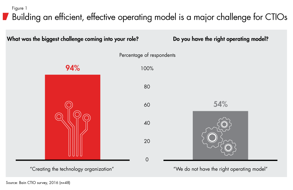 Our research shows that fewer than 50% of CTIOs believe they have the right operating model in place, and more than 90% describe this as their biggest challenge upon entering the role (see Figure 1). As IT and network technology, once separated into silos, continue to fuse, CTIOs must build organizations that accelerate the transition and embrace converged technologies, Agile management practices and resources that enable virtual operations, such as the cloud.