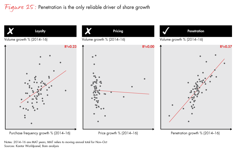 The information in our report supports the insight that—across categories and countries—increasing penetration is the primary way to build big brands. This is a key insight from the research of the Ehrenberg-Bass Institute for Marketing Science.