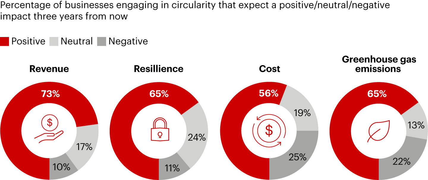 • Some 65% of businesses expect circular solutions to improve their resilience.