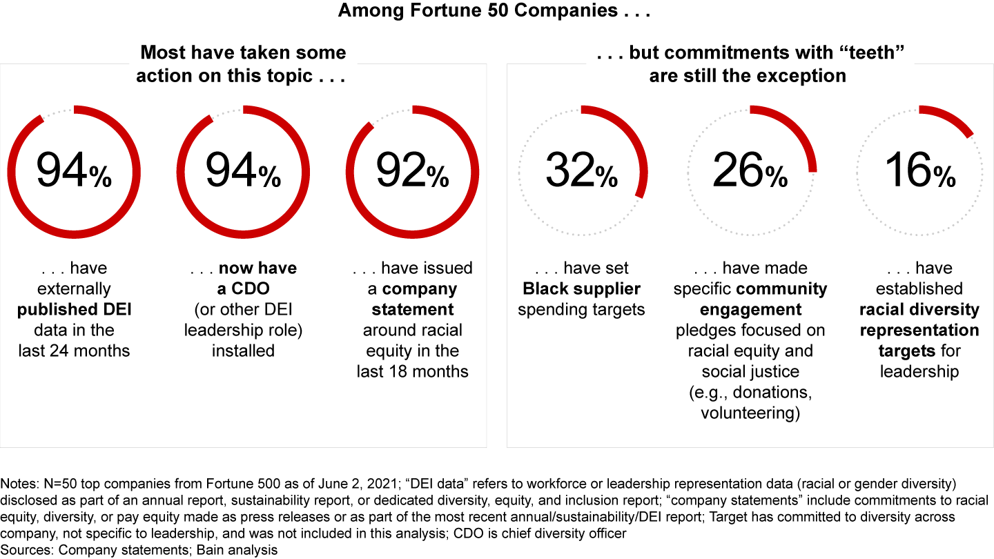 Despite progress on DEI governance, few companies have disclosed measurable racial equity goals