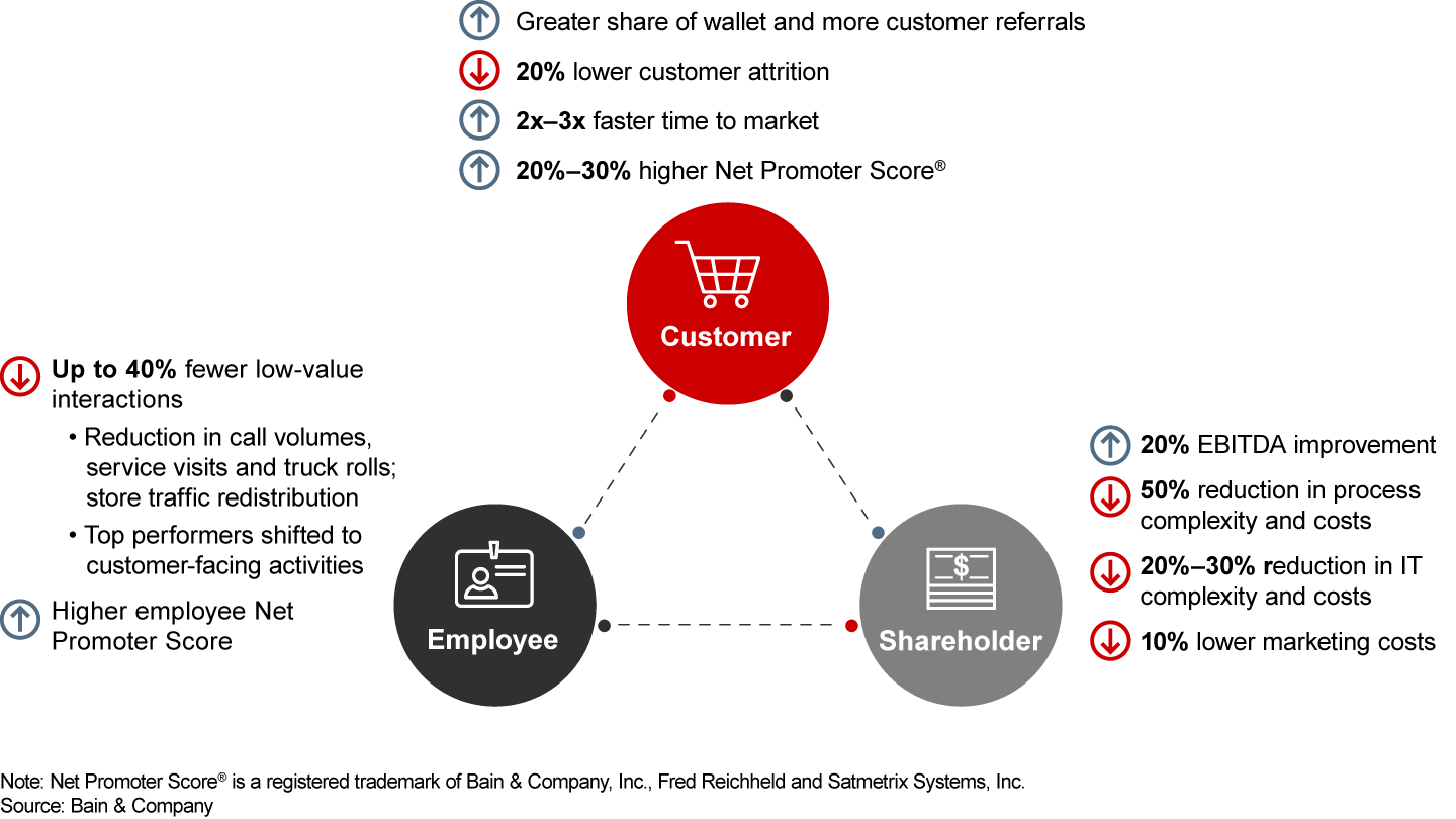 Simple and digital products, services and customer experiences, delivered at lower cost, have become essential for continued growth—and in some industries, essential for survival. Completely digital, self-serve experiences that go right the first time remain the North Star, and the time frames to achieve this have been compressed. Companies must jump years in a matter of months to provide digital experiences that are easy, intuitive and reliable.