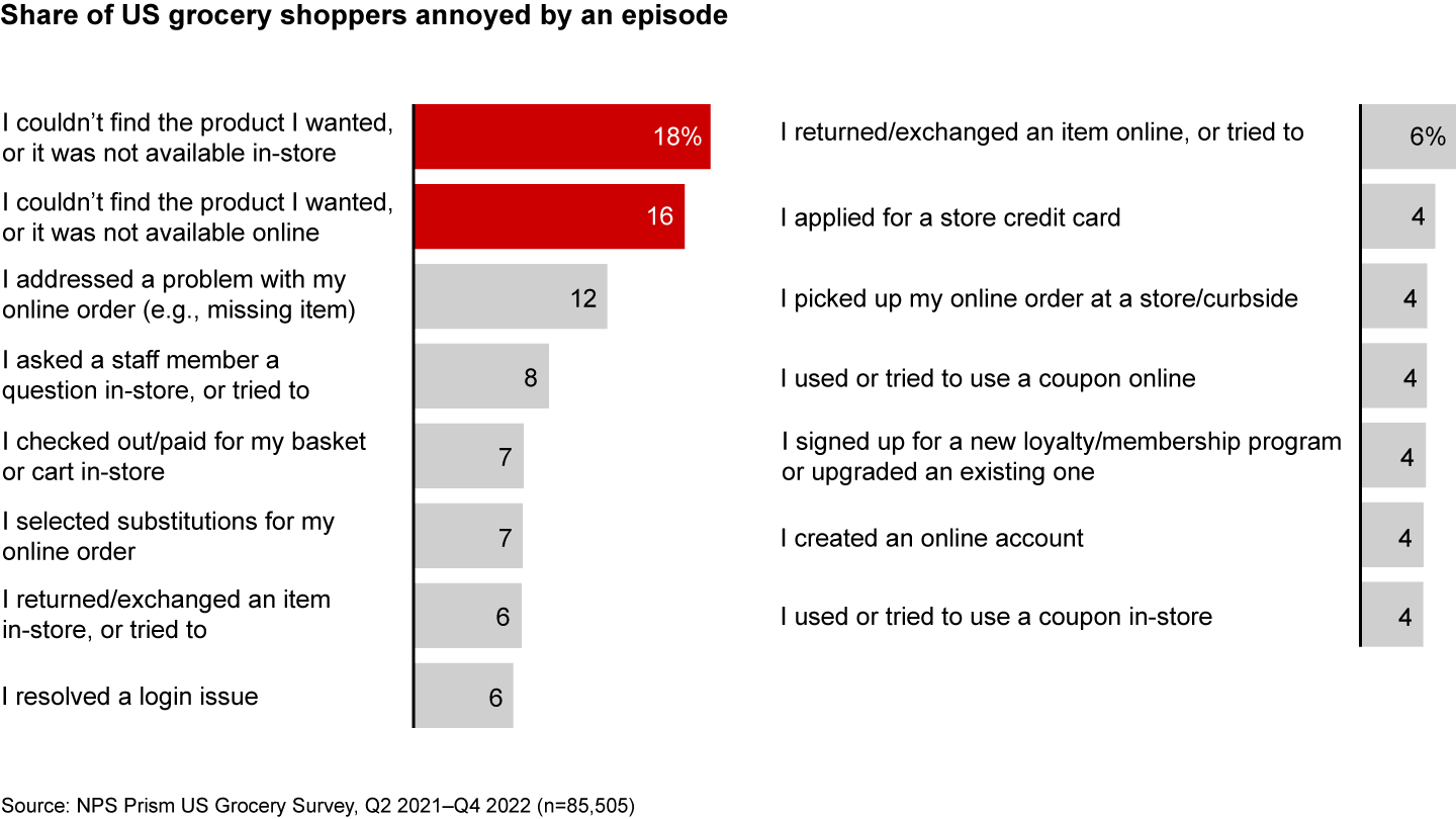 Stockouts emerged as the most annoying occurrence among common episodes in the US grocery-buying journey