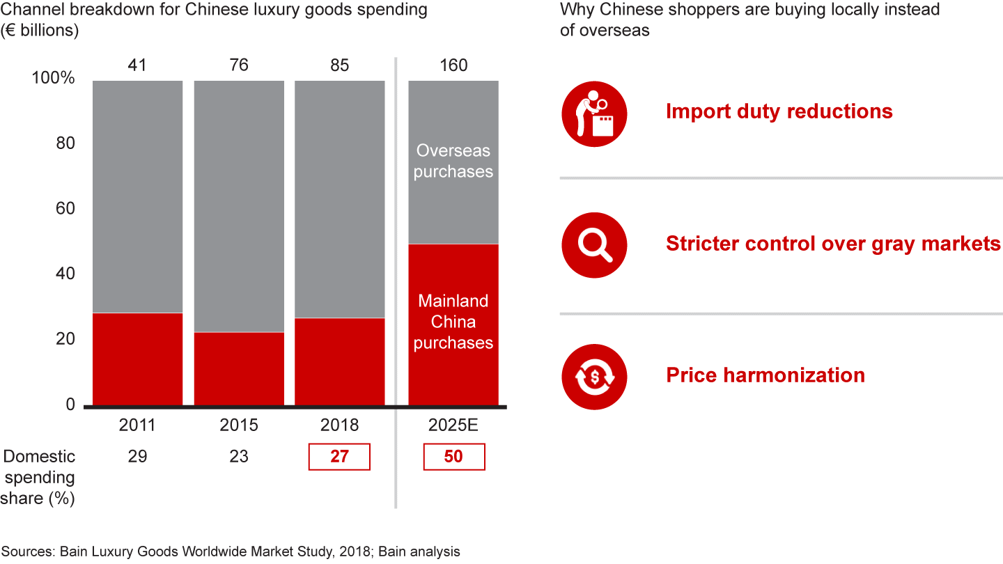 That expansion will result from the same positive forces that made 2017 and 2018 so strong. The Chinese government is expected to maintain its adjustment of import duties to encourage domestic consumption, as well as to reduce the VAT rate. It is also likely to continue imposing strict control over passengers and parcels at customs, and to more carefully supervise the army of “daigou agents” who purchase overseas for local consumers. And brands will continue to narrow the price gap with overseas markets.