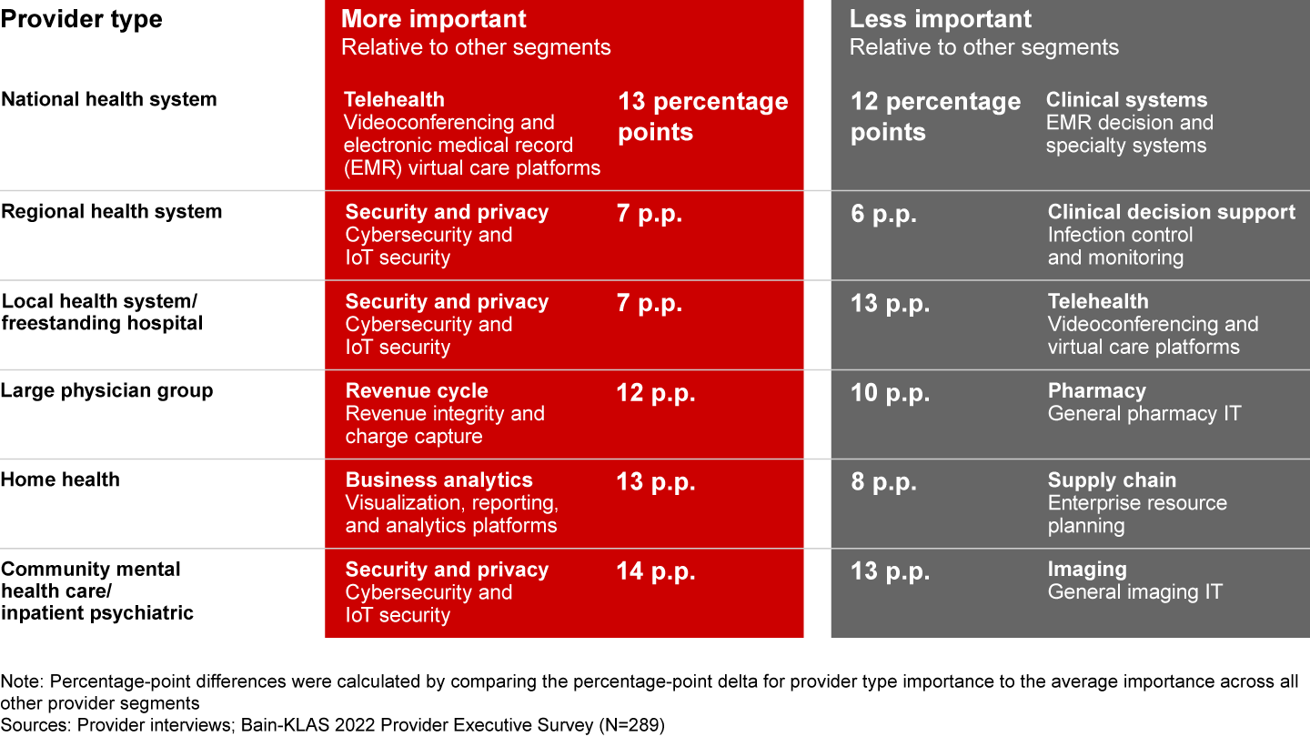 While each of these priorities is broadly relevant across a wide variety of organizations, certain priorities are uniquely important to different types of providers (see Figure 5).