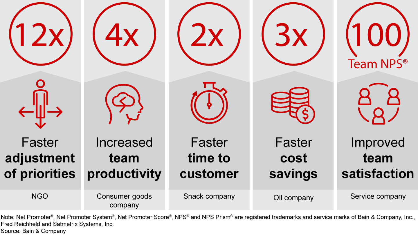 Virtual Agile teams can improve connection with team-building activities such as virtual coffees or games. Instituting a shared online space, a team chat room where everyone can post questions and get input, is also helpful. When a service company needed to develop a new CRM software despite Covid-19, a remote Agile team used virtual happy hours and cooking classes to nurture a strong environment. Their efforts were such a success that team members gave the project a Net Promoter Score® of 100. Reflecting the remarkable moment we are all in, remote Agile team members at a global snack company highlighted feeling more empathy and a greater recognition of one another’s vulnerability. One reason: seeing peers and managers in their home environments, dealing with common challenges like restless children and other Covid-19 stresses.
