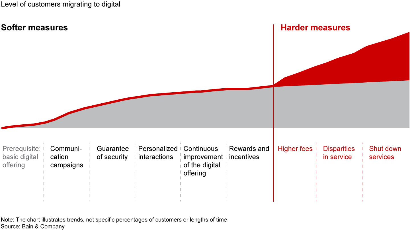 When designing these measures, banks typically want to start with voluntary migration, adopting soft measures, and later move on to more forceful, harder measures (see Figure 1).
