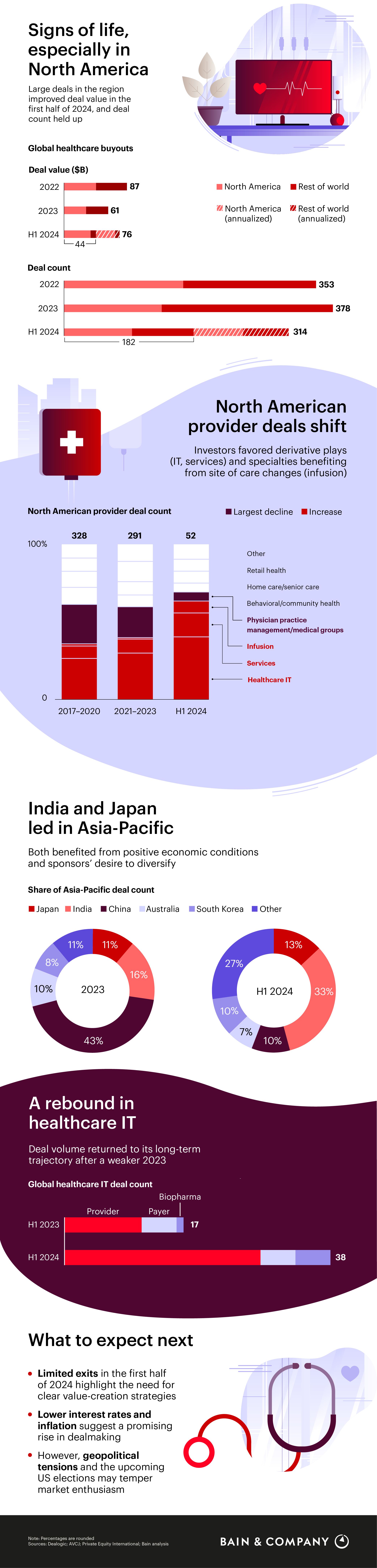 Infographic Big Deals Rule: Healthcare Private Equity Midyear Update North American deals rebounded, large-scale assets and IT investments drew significant interest, and more investors gravitated to India. By Nirad Jain, Kara Murphy, Jeff Woods, Justin Doshi, Sharon Fry, and Mike Vandenberg Infographic Big Deals Rule: Healthcare Private Equity Midyear Update en Authors Nirad Jain Partner, New York Kara Murphy Partner, Boston Jeff Woods Partner, Boston Justin Doshi Partner, Atlanta Sharon Fry Partner, New York Mike Vandenberg Partner, Denver First published in agosto 2024 Tags Healthcare & Life Sciences Private Equity