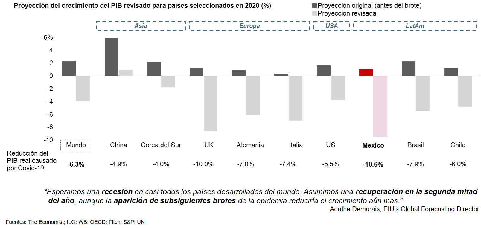 Figura 1: Se espera que el crecimiento global del PIB en 2020 caiga ~6 p.p. vs. Proyecciones prepandemia- México será uno de los países más afectados