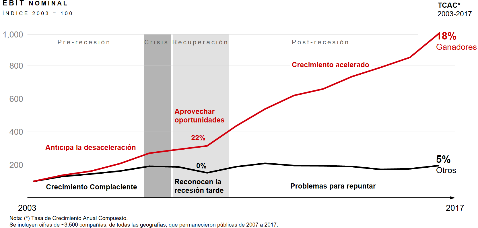 Figura 2: Las crisis y sucesivas recuperaciones son “momentos de verdad” para las empresas