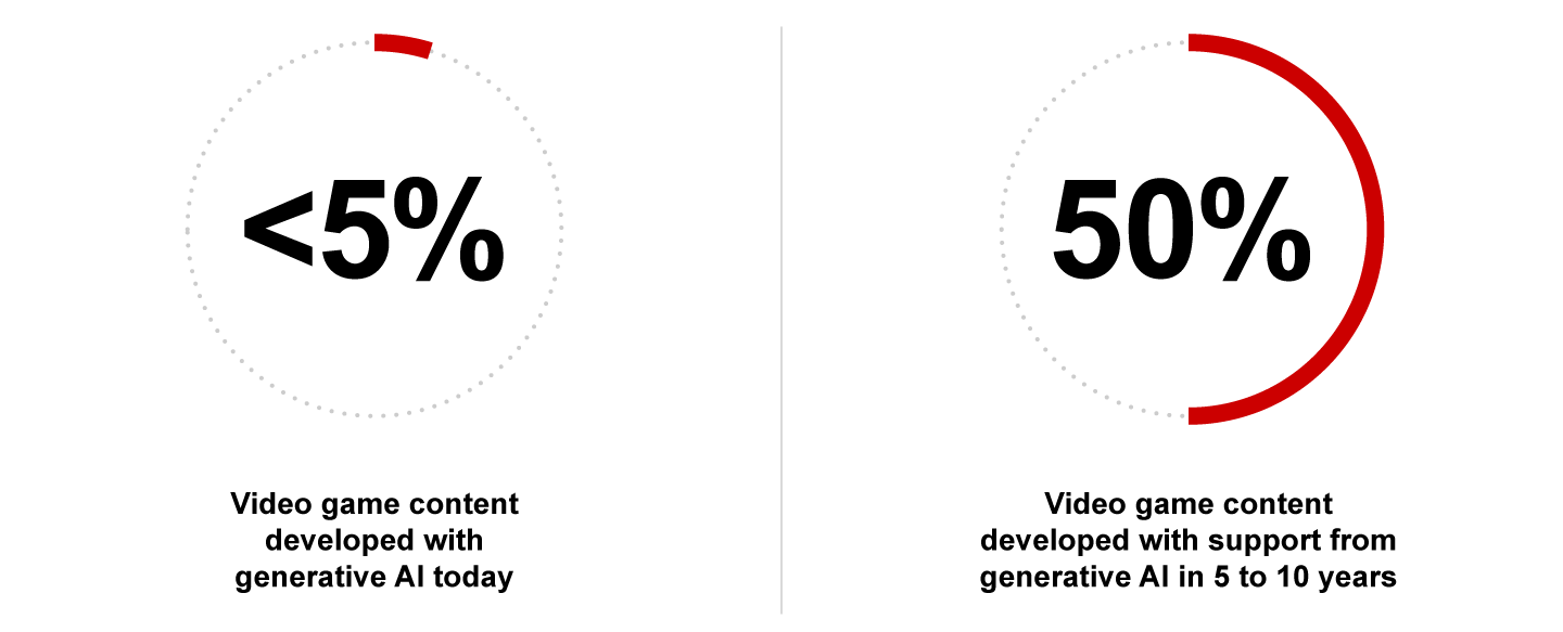 Generative AI is just beginning to have an effect on video games, but gaming industry executives believe that over the next 5 to 10 years, it will contribute to more than half of the video game development process.