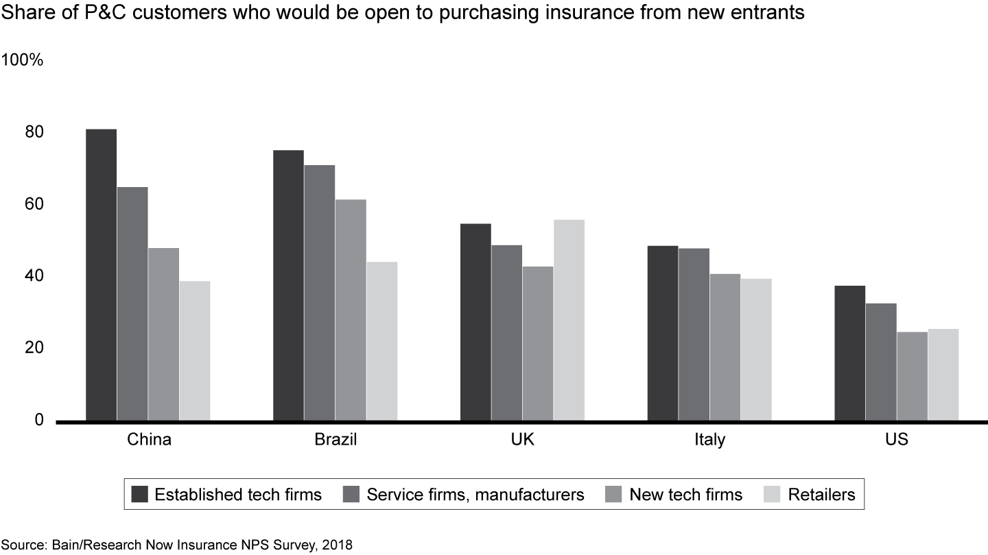 P&C customers around the world would consider nontraditional providers, including tech firms and retailers