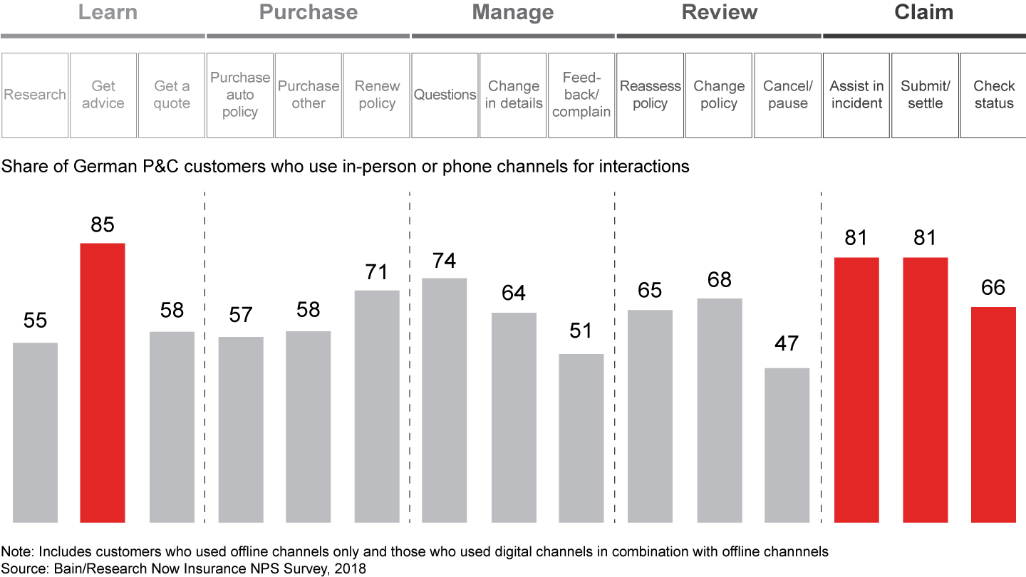 • Customers use offline channels because they consider them more personalized and easier to use—a signal to insurers that they need to improve their digital offerings.