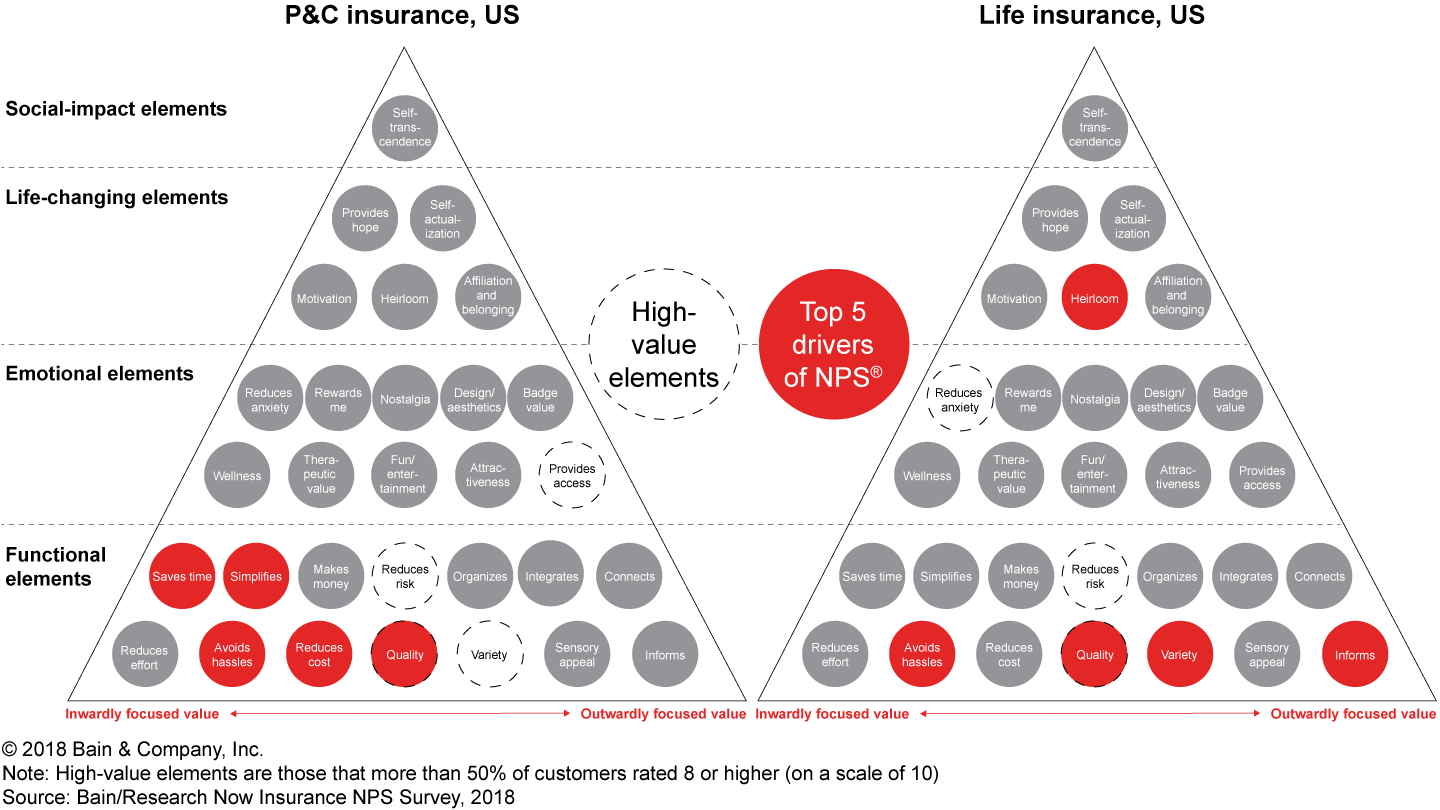 Bain has identified 30 Elements of Value® that can lift products and services above commodity status for consumers