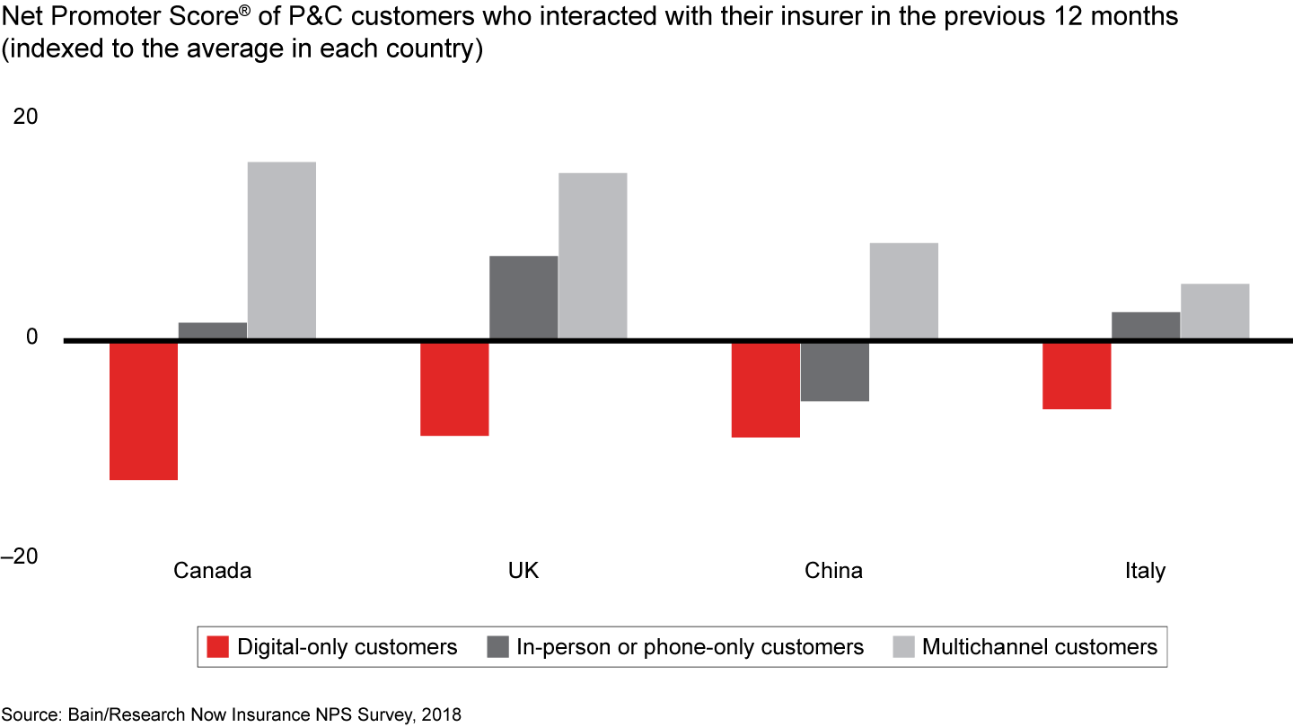 Customers who interact only through digital channels give lower loyalty scores to their insurers