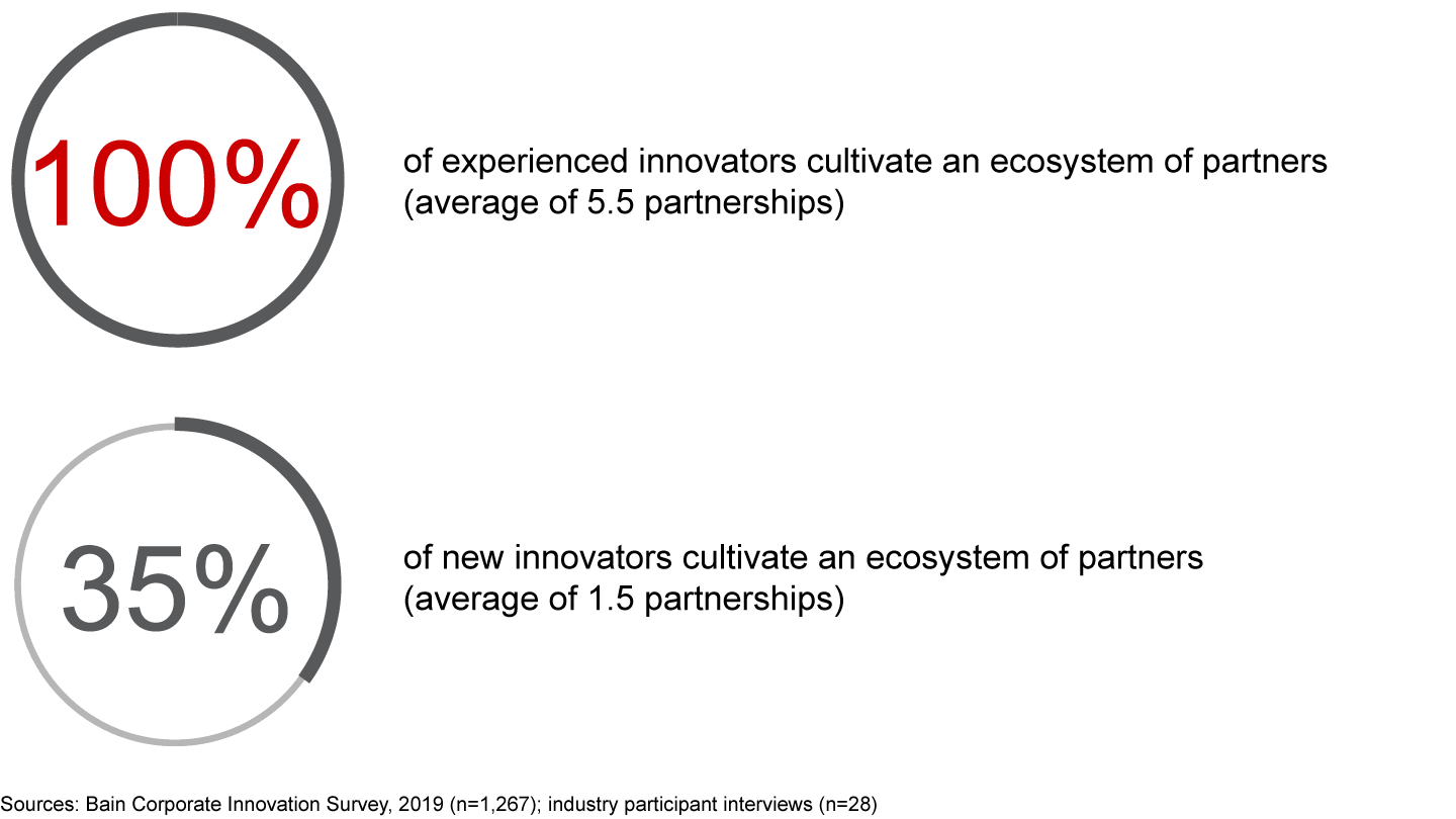 Open up your strategy. Use not just the boat, but also the wind, current, crew and all the assets of your ecosystem to speed and improve innovation. Highly innovative companies collaborate with an ecosystem of external organizations. The most experienced innovators in our study have more than three-and-a-half times the number of partners as the least experienced group (see Figure 4).