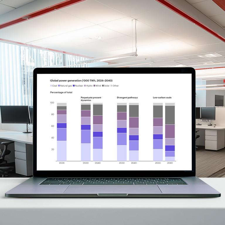 Plan and decide with confidence. Intersect, Bain’s global energy and carbon modeling capability, grounds strategic decisions in a comprehensive, scenario-based view of how the energy system could unfold given evolving policy, market demand, technology adoption, and commodity prices.