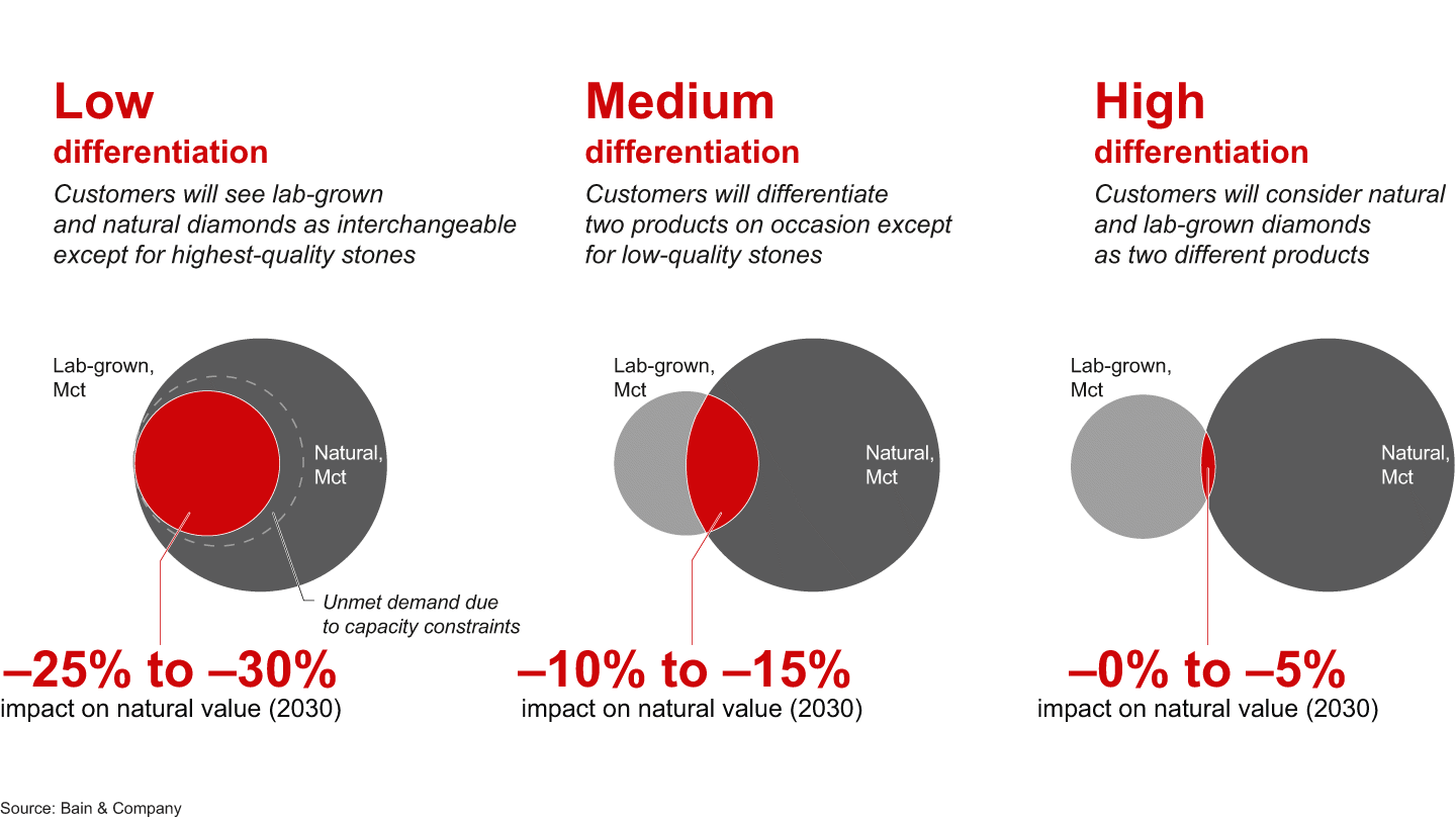 Three potential market scenarios exist based on how consumers perceive lab-grown diamonds