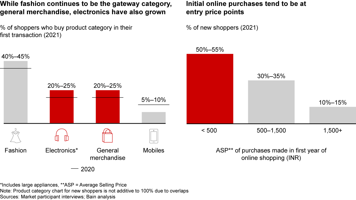 Fashion is a crucial category to onboard shoppers; majority initial online purchases are at entry price points
