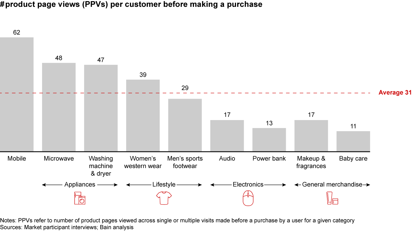 • Fashion and low-price items have been pivotal to onboard new shoppers. More than 40% of new shoppers bought fashion in their first online purchase, and the average selling price (ASP) for items bought by new shoppers was 20% lower than for existing shoppers.