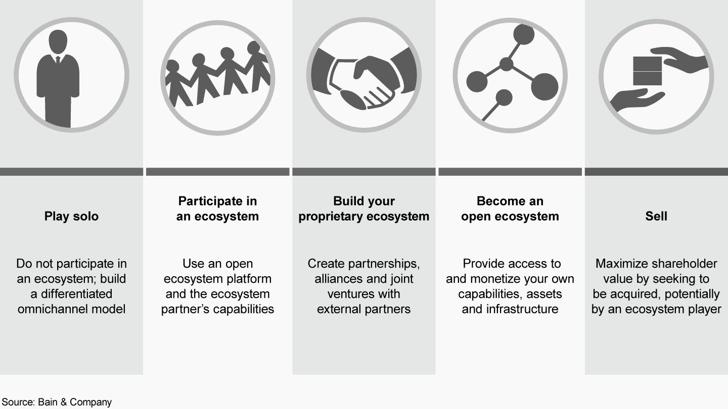 • We’ve identified the strategic options for retailers considering ecosystems and the factors that will help them choose the best approach.