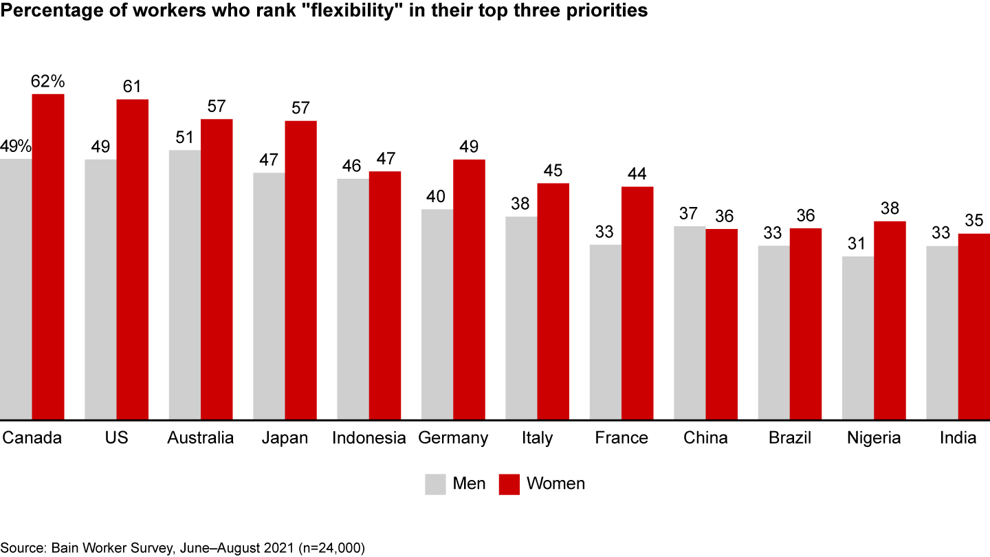 Women prioritize flexibility in their careers more than men