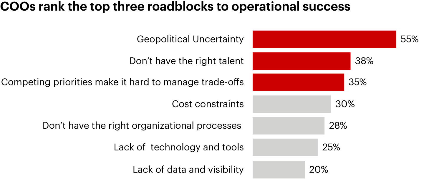 Today’s operating environment is defined by disruption: geopolitical tension, trade fragmentation, labor scarcity, rapid technological change, and persistent demand volatility (see Figure 1). The assumptions that once underpinned supply chain design—predictability, global fluidity, and cost primacy—have been fundamentally upended.