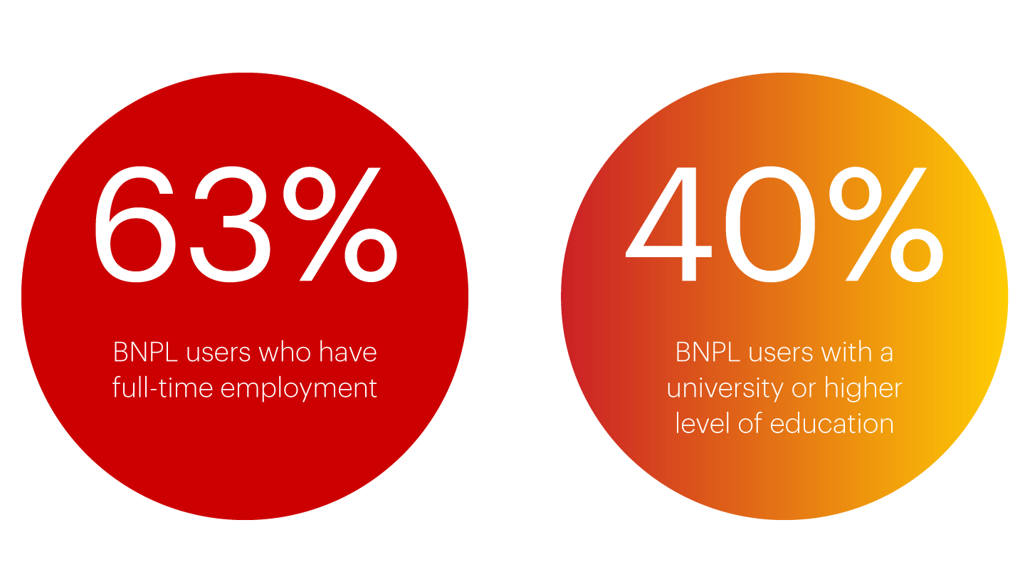 Only 3% of those who used BNPL described their financial situation as vulnerable, while 35% indicated they have little to no savings every month. This is broadly in line with the overall population of online shoppers. We found that 63% of BNPL users are in full-time employment, meaning they are nearly 29% more likely to be in full-time employment than all respondents to the survey. In addition, it is worth noting that more than 40% of users have a university or higher level of education.