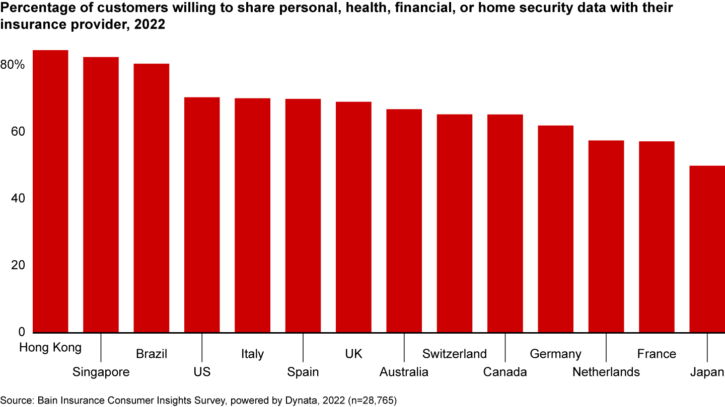 - Unfortunately, insurers aren’t yet seizing the opportunity to redefine the role they play for customers, as very few consumers globally use risk-prevention services or share connected-device data with their insurers. Most insurers haven’t even positioned themselves to seize the opportunity.