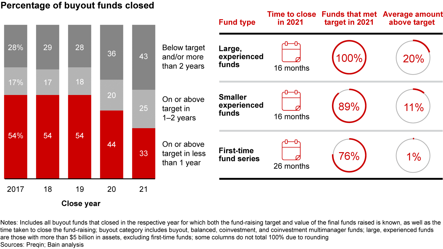 It took longer for funds overall to hit their targets in 2021, although large funds with established track records had an easier time