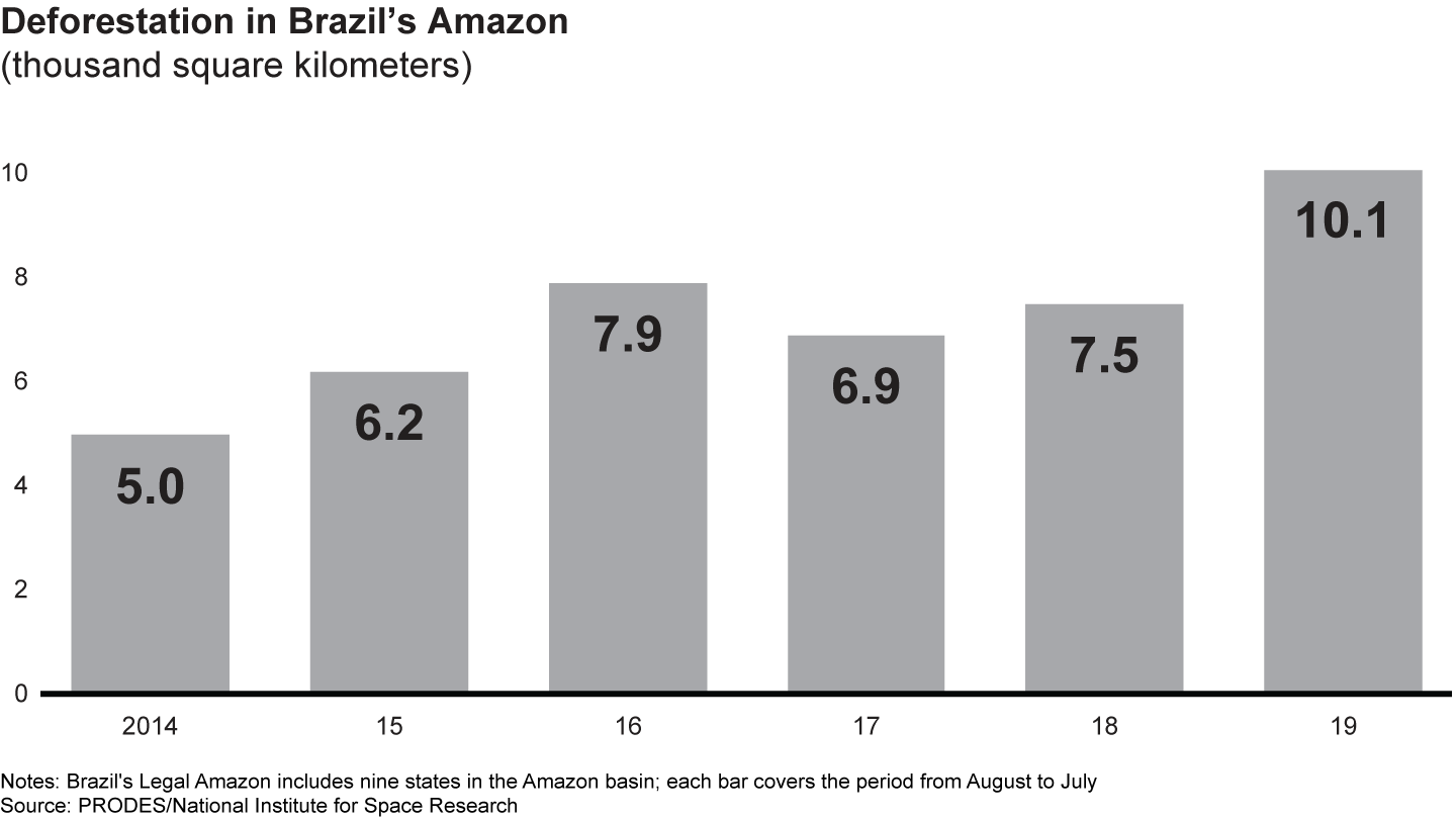 This trend reflects a deeper transformation toward sustainable investment in global finance. In his annual letter to CEOs in January 2020, BlackRock CEO Larry Fink wrote that climate risk is investment risk, and that business leaders and investors should be guided by the goal of creating gains for all of its stakeholders. And in June 2020, a group of 29 organizations managing a combined $3.7 trillion in assets sent an open letter to the Brazilian government expressing concern over the “increasing deforestation in Brazil” and warning of “widespread uncertainty about the conditions for investing” in the country. The letter stated that protecting biodiversity and tropical forests are in the best long-term interests of their beneficiaries, implying the reputational risk of failing to take action to guard against deforestation.
