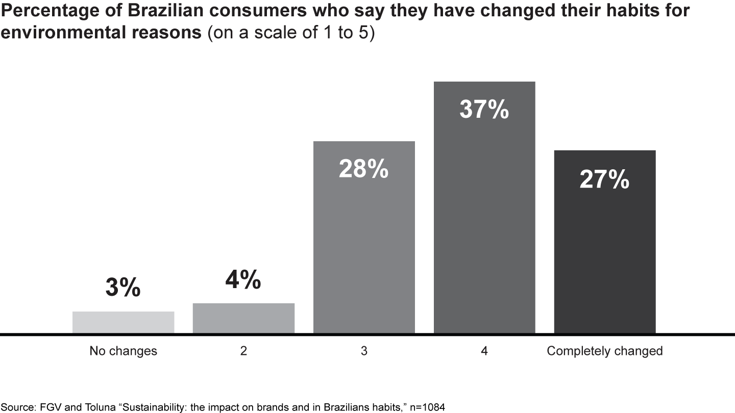 Calls for sustainability are coming from multiple fronts—including investors and consumers who are increasingly focused on environmental sustainability. According to a study by Fundação Getulio Vargas, an education and research institution, more than a quarter of the Brazilian population says it has completely changed buying habits due to environmental concerns (see Figure 3). In richer countries, this trend is even stronger.