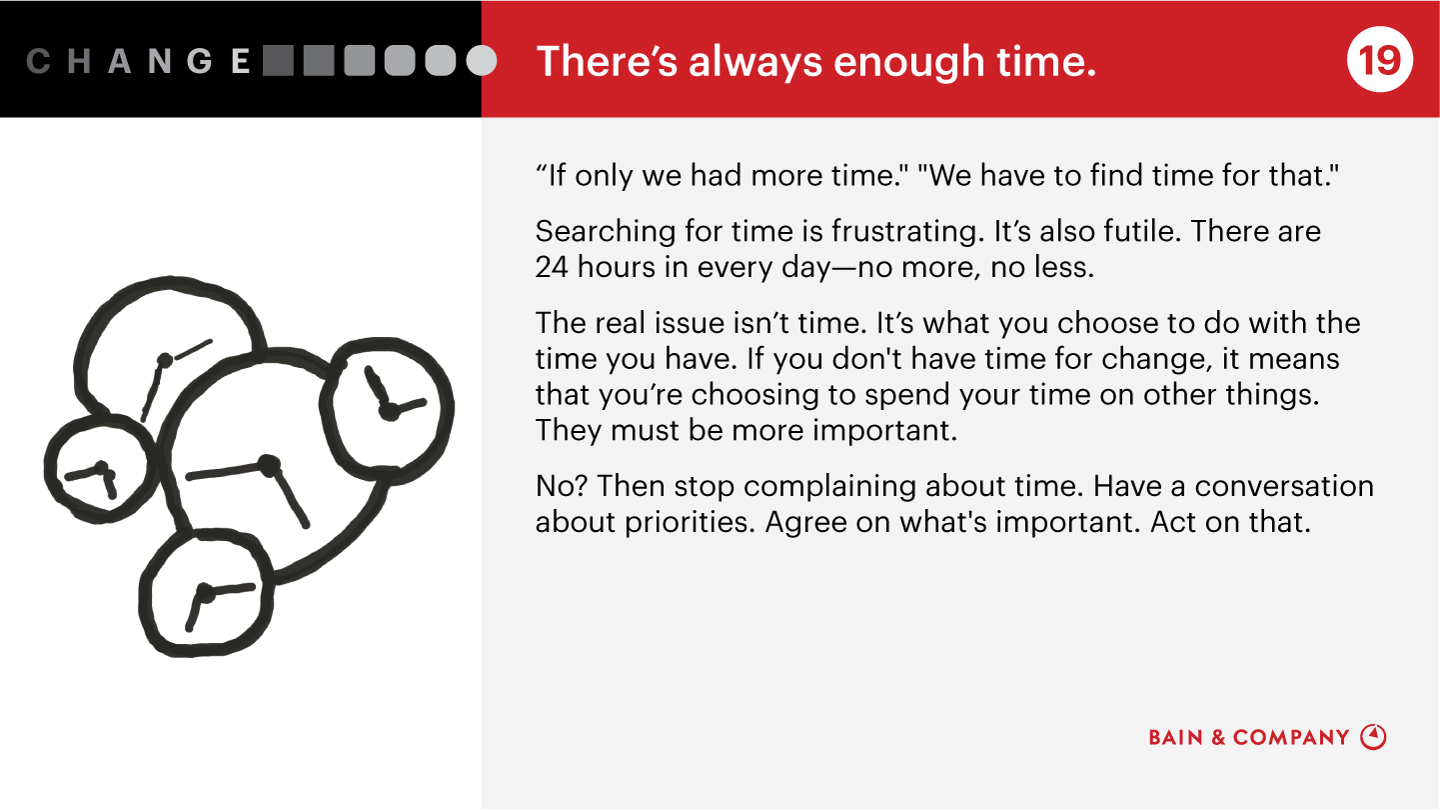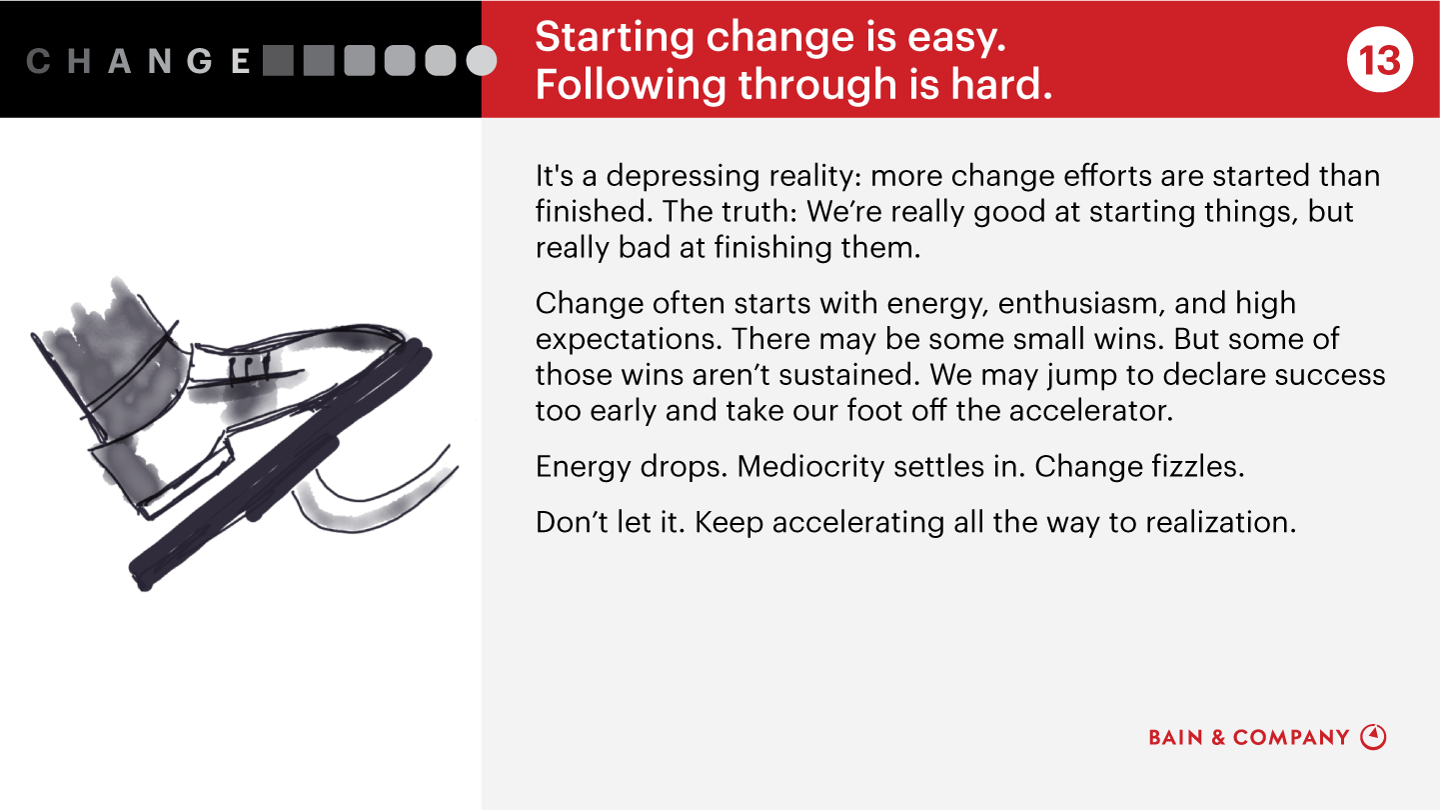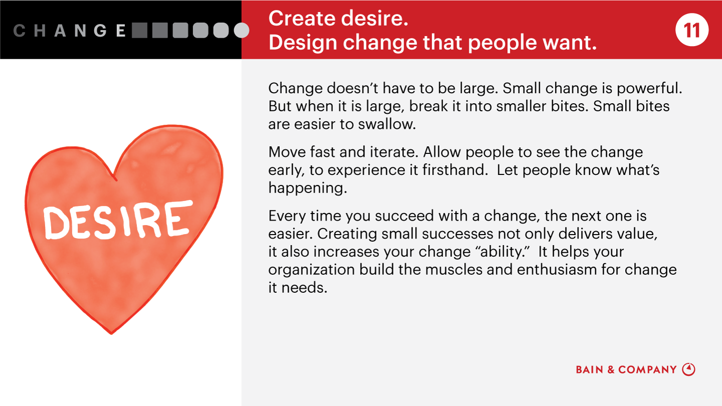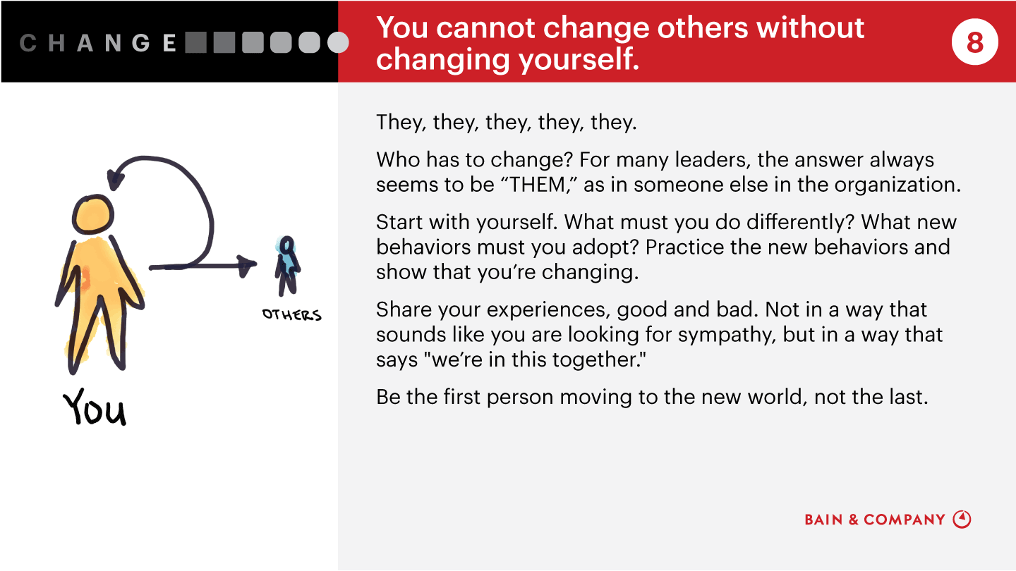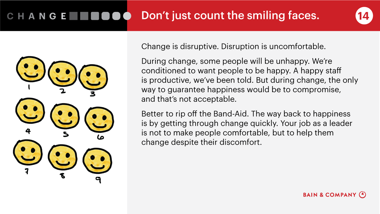 In an easy-to-digest format, these cards shed light on the trickiest aspects of change, and offer tips for how executives can think about change differently. They bring new perspectives to the factors—like disruption, doubt and habit—that make change difficult, and outline approaches that can help people become more comfortable with change and increase the chance of success.