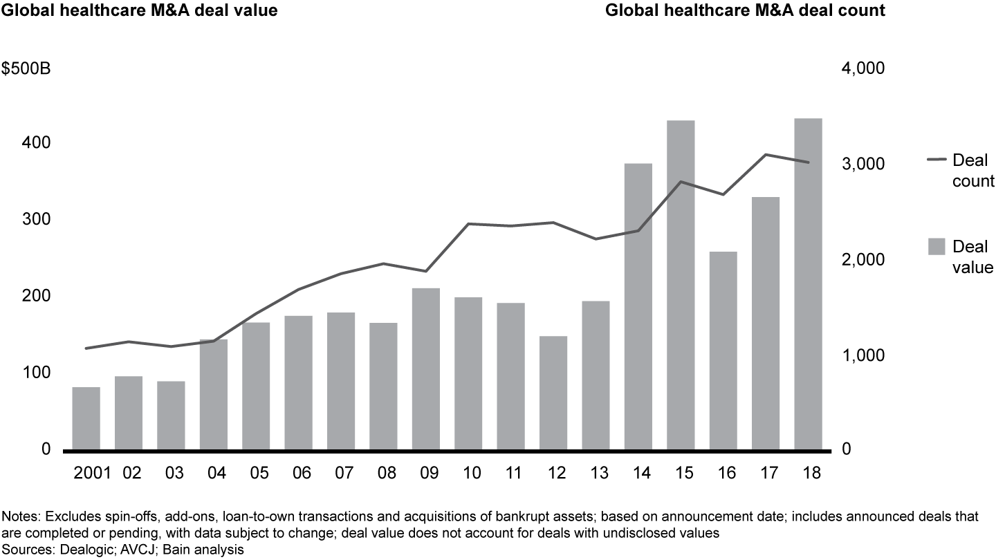 This article is part of Bain’s 2019 Global Healthcare Private Equity and Corporate M&A Report. Explore the contents of the report here or download the PDF to read the full report.