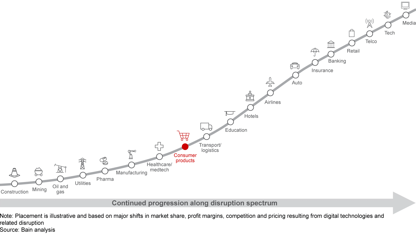 - Within the consumer products industry, different companies will feel disruption differently and at a different pace across the value chain.