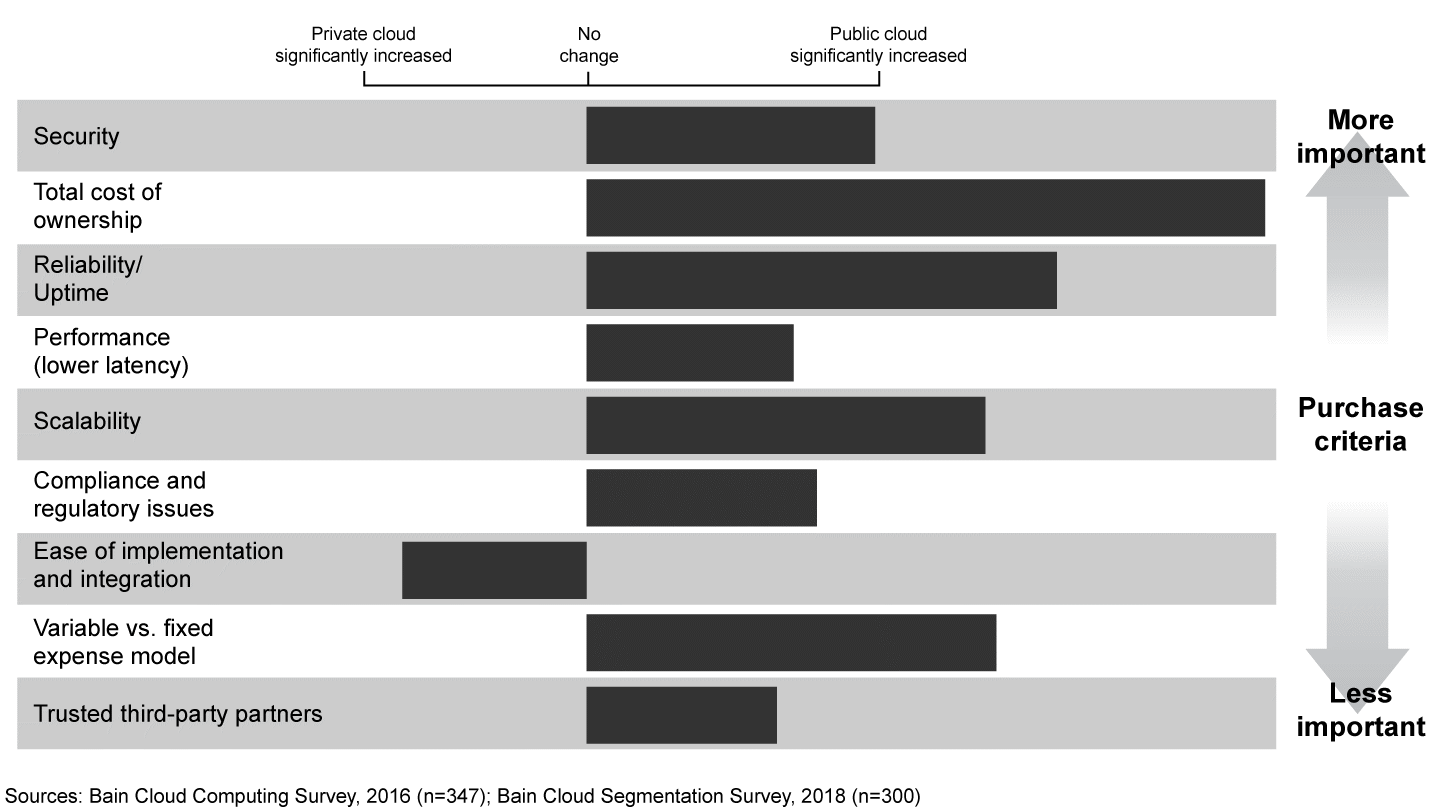 Security, cost and reliability are the top three criteria that executives gave for choosing public cloud over private