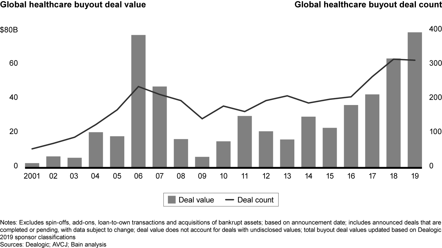 This article is part of Bain’s 2020 Global Healthcare Private Equity and Corporate M&A Report. Explore the contents of the report here or download the PDF to read the full report.