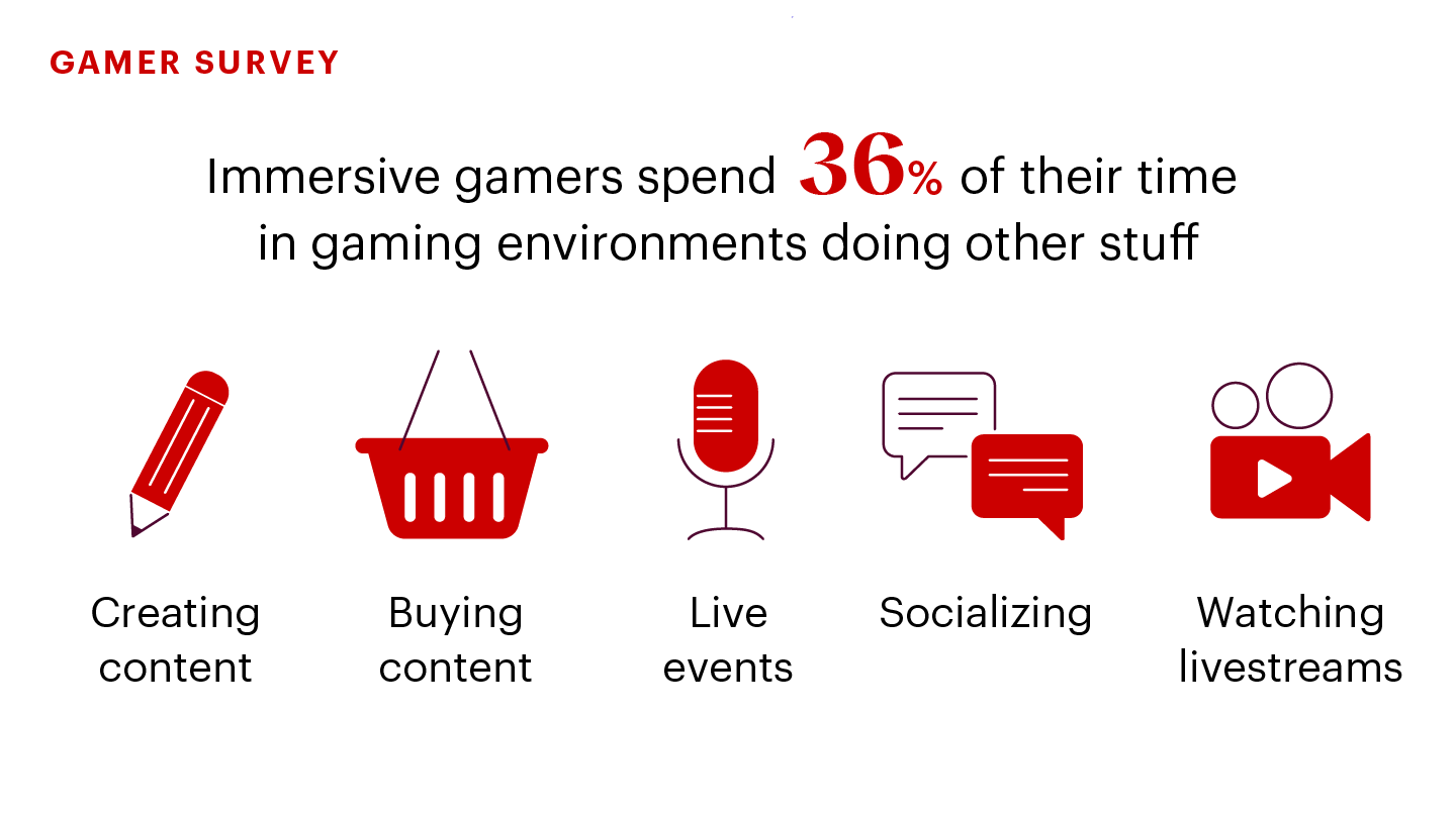 The second Bain Video Game Consumption Survey looked at how gamers spend their time and money. Gamers told us that they like immersive games and want more interoperability across devices and platforms. They’re also spending more time in game environments, socializing, shopping, and consuming other media.