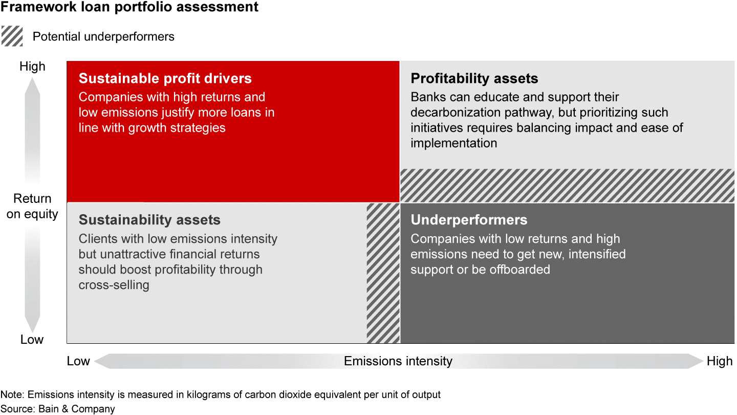 As the leading banks aim to get out in front of these trends, our four-part framework provides a pragmatic and comprehensive approach to decarbonizing loan portfolios. It covers parts of a bank’s portfolio that are overlooked by other approaches, and it proves that profitability and sustainability need not be seen as competing virtues.