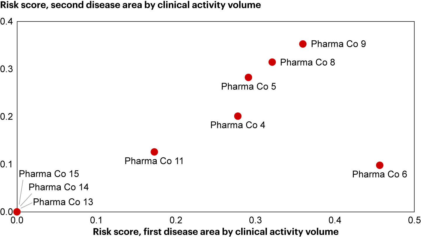 Some companies have consistent trial execution risk scores across disease areas