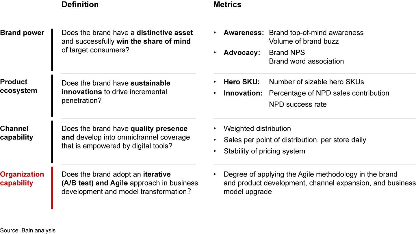 - Organization capability: Build agile iterative capabilities (empowered by data and insights) to constantly review and improve product development, channel expansion, and business model