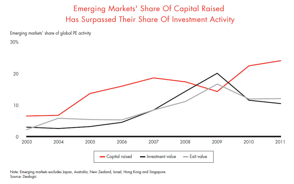 With developed economies stuck in the doldrums, private equity’s fascination with the fast-growing emerging markets continues to intensify. Captivated by robust emerging market GDP growth, increasingly sophisticated companies and managers, and their seeming exemption from the debt market woes that beset Europe and North America, limited partners (LPs) continue to pour money into funds that target emerging market opportunities. Eventually, hopeful investors believe, those vast sums of capital will surely find abundant productive investment outlets in these underpenetrated economies.