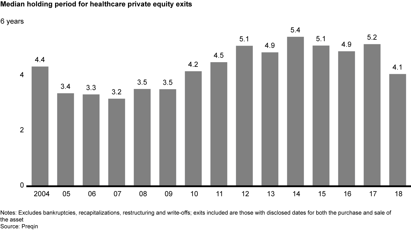 - The median holding period for 2018 exits declined to a more typical long-term level of 4.1 years, the lowest level since 2009.